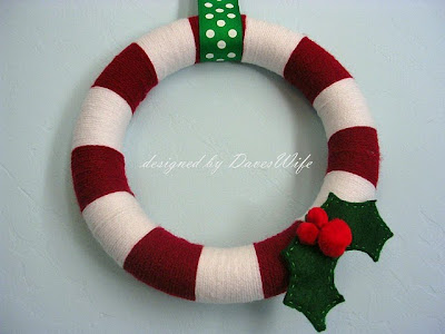 The Diary of Dave's Wife made this darling holly jolly yarn wreath for the Christmas Season. Love it!