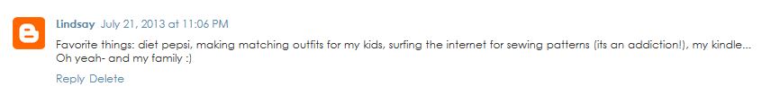 It was Lindsay's blog post comment entry that was our winning entry. Here's what she had to say: