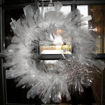 I don't know where this is originally from, but I saw it on Symone's Mommy! Is that not an amazing look? Three simple wreaths hanging from an extra wide ribbon. This is definitely on my "someday" to do list!