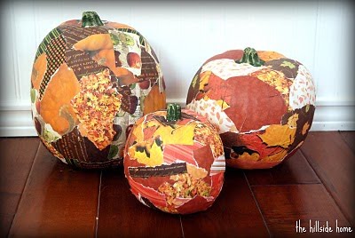 The Hillside Home has a wonderfully messy and fun way to decorate pumpkins! Use your patterned scrapbook paper to paper mache them! So interesting at which to look! Saturday, September 11, 2010