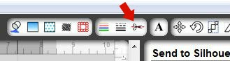 Thanks to an awesome reader (big shout out to TaraJay) who commented on my Spring Subway Art, I found out that the easiest way to send something through the Silhouette multiple times is to just turn off and on the things you do and don't want cut (or sketched, in my case). Maybe I'm the only one out there that hadn't figured out this feature, but incase I'm not, I'll show you what I'm talking about. Up at the top of the toolbar in Silhouette, there's a button that looks like a pair of scissors and a red line.